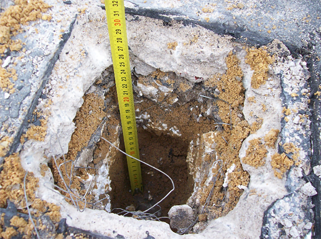 Technický specialista BMI osobně provede průzkum střešního pláště včetně sond do střešního pláště, aby ověřil jeho skladbu a stav jednotlivých vrstev.
