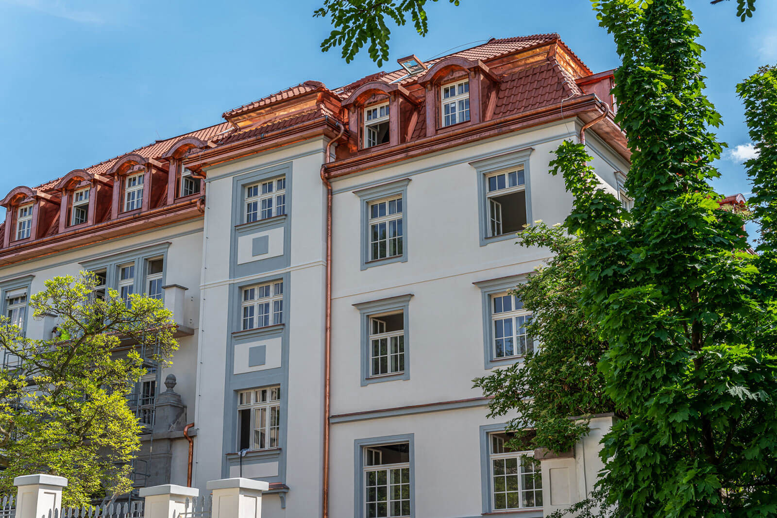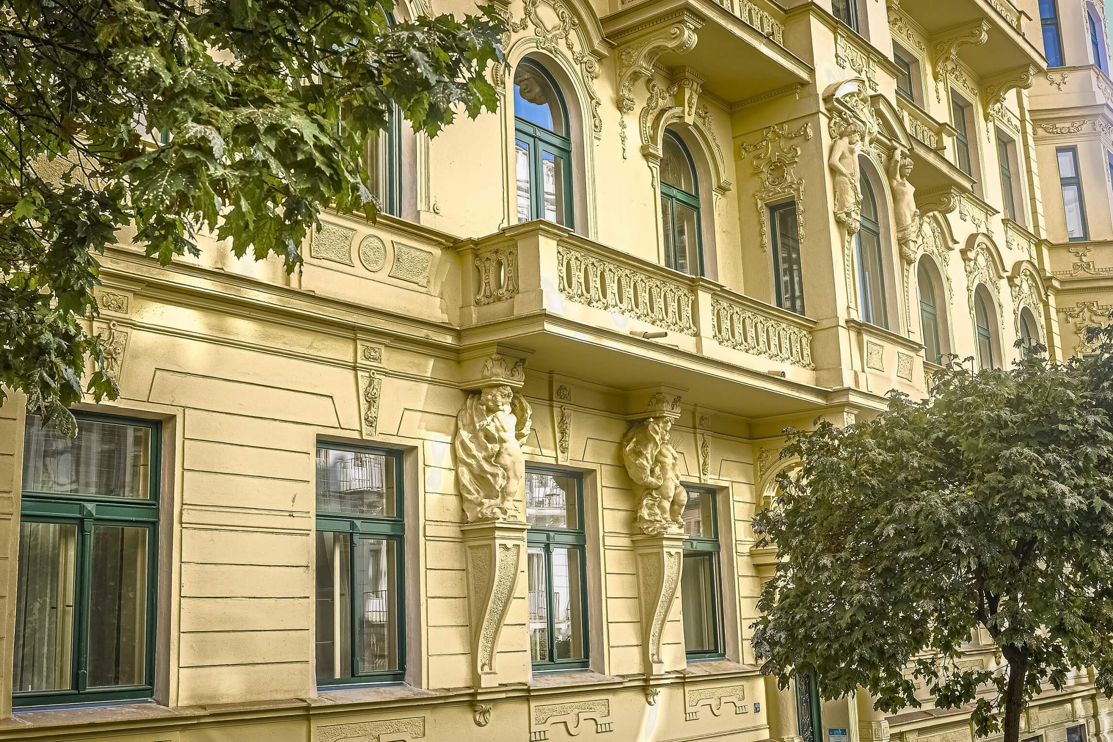 V této realizaci výměny oken a balkonových dveří byla špaletová okna Historic vyrobena jako přesné repliky původních historických oken v dvoubarevném provedení (zevnitř bílá, zvenku zelená) a to včetně všech ozdob a profilace. Před realizací jsme vyřídili povolení od památkářů včetně vypracování výkresové dokumentace. Samotná realizace pak trvala necelé tři měsíce a bylo při ní vyměněno 182 ks historických oken a balkonových dveří. Celá zakázka byla přitom provedena na klíč. Zajistili jsme demontáž a likvidaci starých oken, montáž, zednické začištění.
