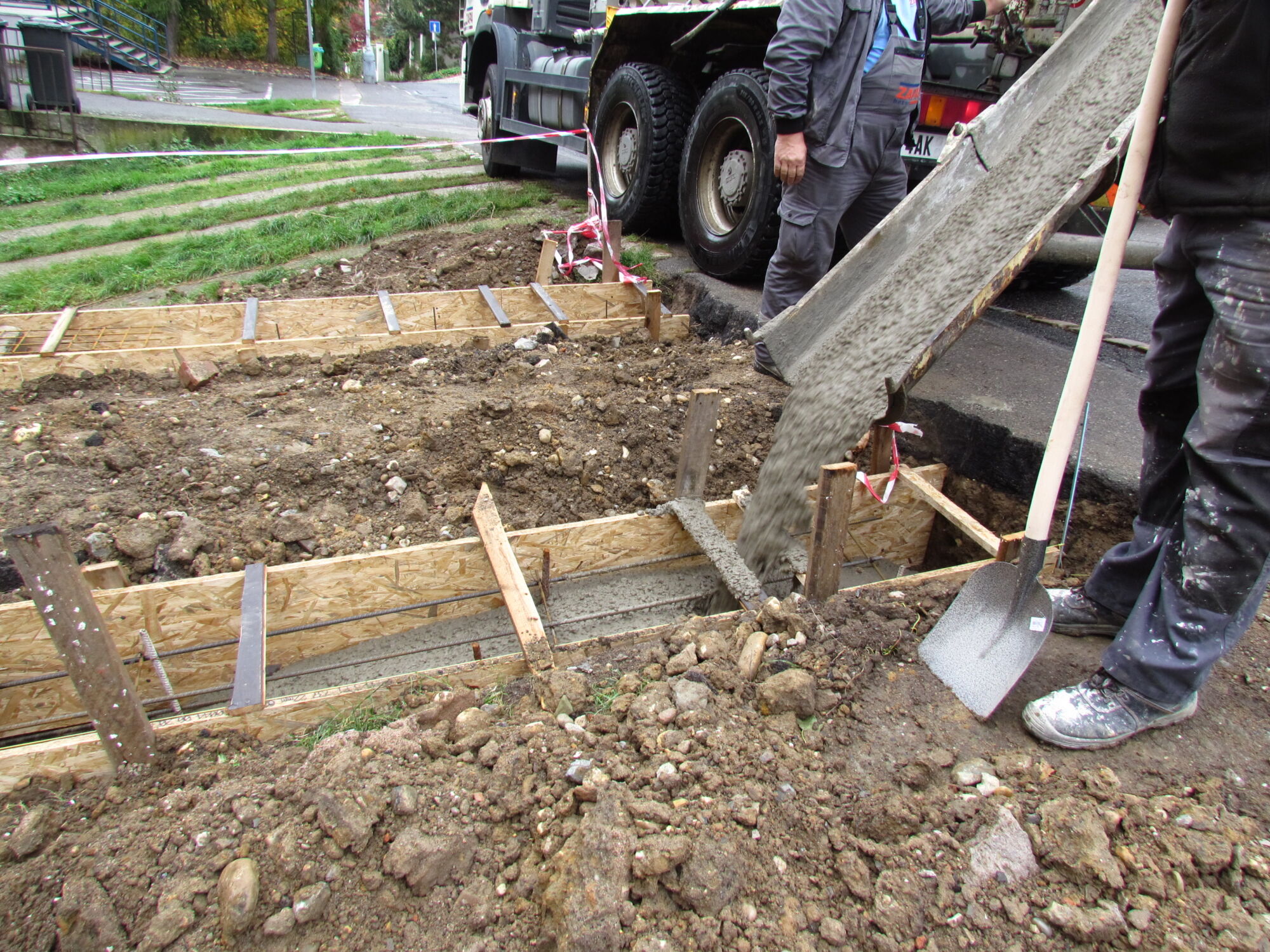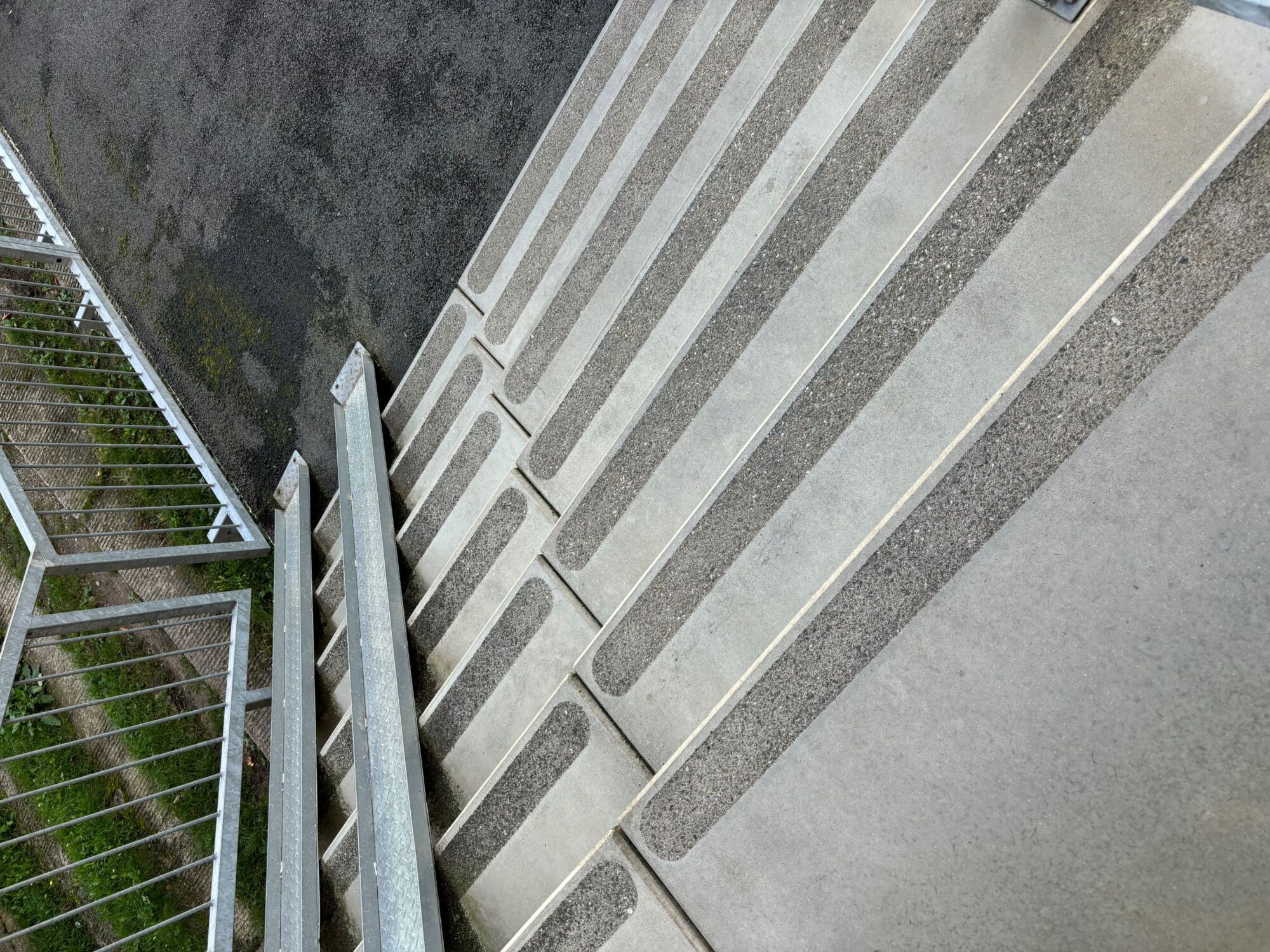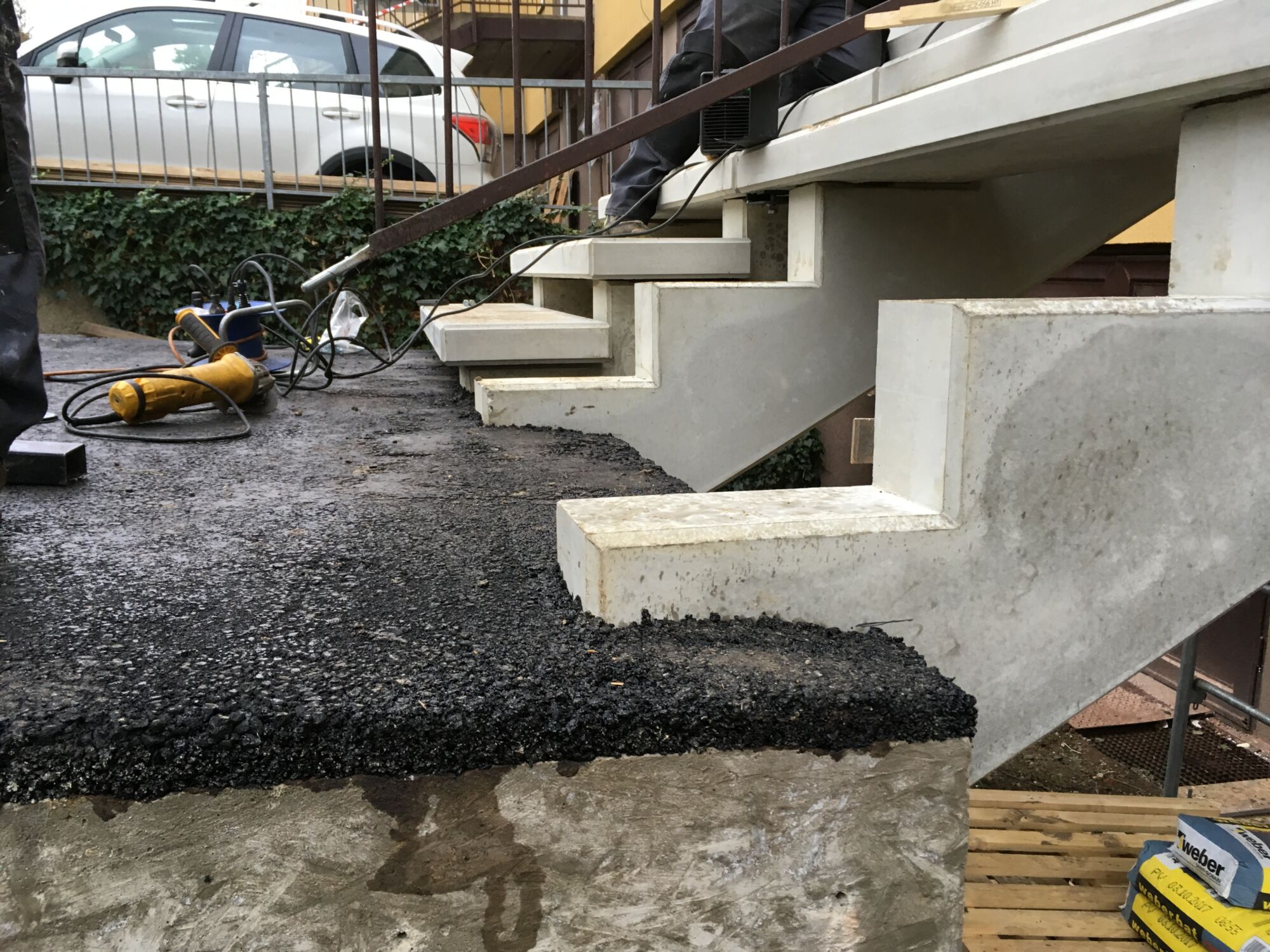 Renovace začíná vždy bouracími a zemními pracemi, kdy se připravuje podklad pro montáž nového schodiště. Po odstranění starého schodiště a dokonalé přípravě podkladu přichází na řadu montáž nosné ocelové konstrukce s povrchovou úpravou žárové zinkování (jako alternativní řešení můžeme použít betonový prefabrikát), na kterou se montují jednotlivé schodišťové stupně. Zde je kladen velký důraz na pochozí plochu, která má zásadní vliv na bezpečnost uživatelů hlavně v extrémním nepříznivém počasí. Z těchto důvodů doporučujeme použití protiskluzné mrazuvzdorné betonové dlažby na podesty, betonových prefabrikovaných schodišťových stupňů včetně protiskluzné hrany nebo použití ocelových pozinkovaných roštů. Mimo montážní práce je potřeba provézt také související zednické a fasádní práce, které samozřejmě provádíme v celém rozsahu jako součást díla, tím zákazník nemusí řešit dodatečné smluvní vztahy s dalšími dodavateli.